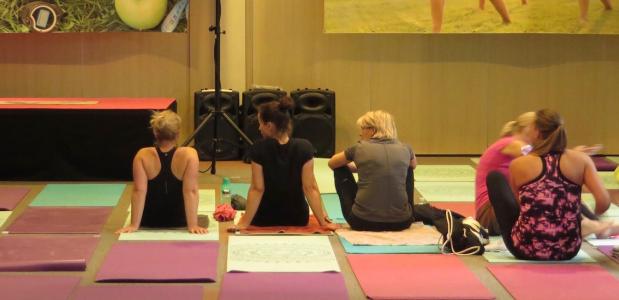 De yogales verhuisde naar binnen vanwege het weer.